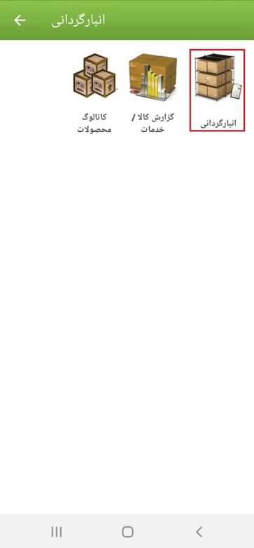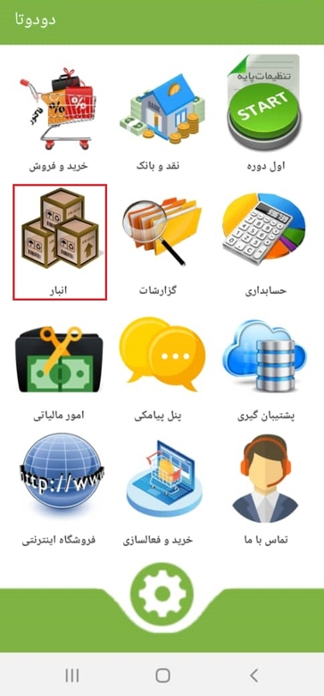 در نرم‌افزار اندرویدی حسابداری دودوتا، جهت مدیریت انبارگردانی، باید از منوهای داخل صفحه اصلی نرم‌افزار وارد قسمت انبار شده و گزینه انبارگردانی را انتخاب نماییم.